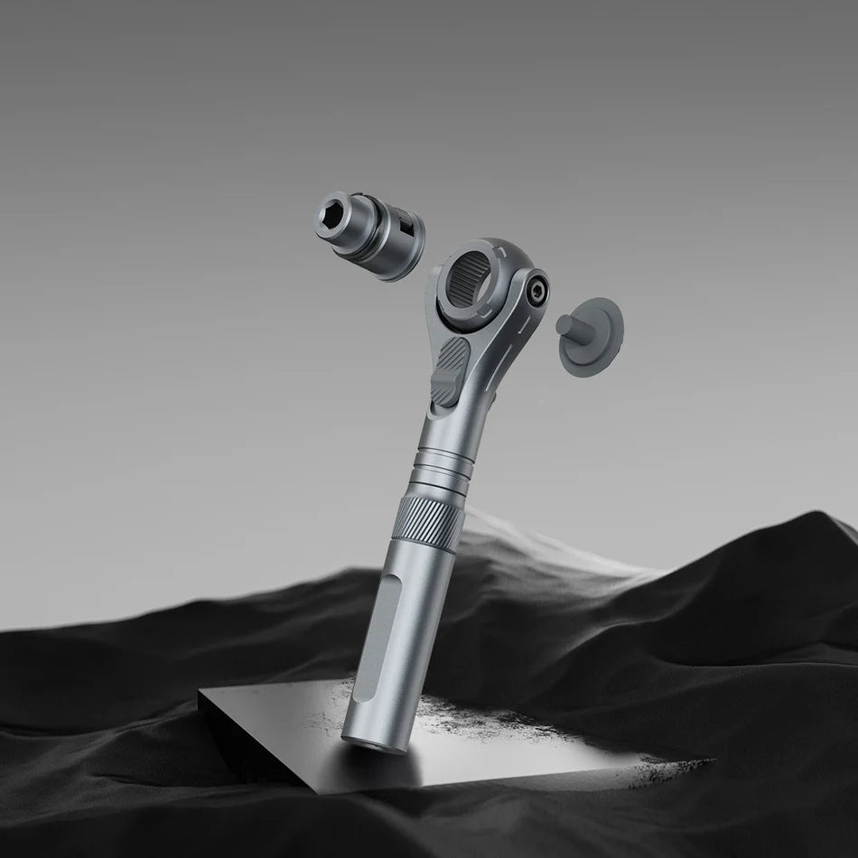 High hardness zinc alloy handle, the center of the cleverly designed a universal ratchet ball head,180 °a key to flexibly adjust the direction, to deal with more tricky angle disassembly.