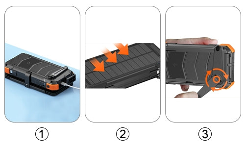 Besides of the practical core function of charging by sun and storing power with its big capacity, this power bank is very convenient to use, too. I really love the built-in charge cables including type c, apple, and micro usb. So no more searching for the cables while in wilderness.